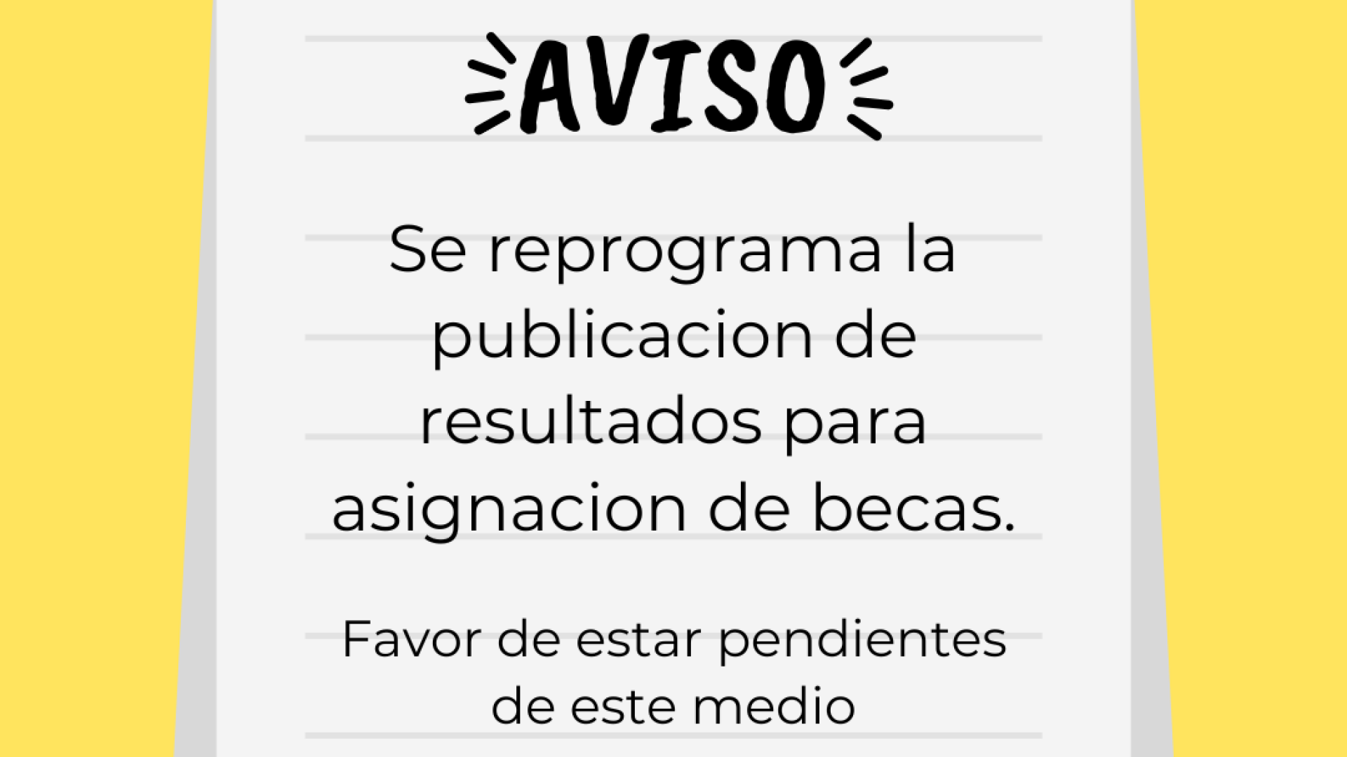 Se reprograma la publicación de resultados para la asignación de becas de este ciclo escolar, por favor estar atentos en este medio para más información.